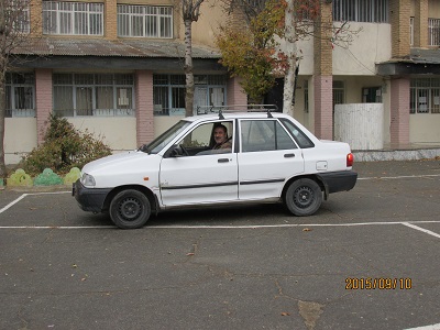 استاد درویشی با پراید در حیاط دبیرستان امام خمینی (ره)