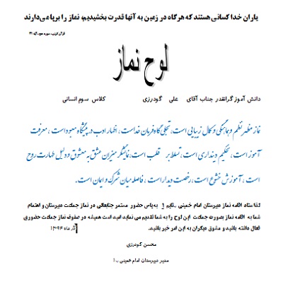 در ضمن از سه منبع معرفی شده برای مبحث نماز ، همکاران فقط فایل شیوه های دعوت به نماز را مطالعه فرمایید .