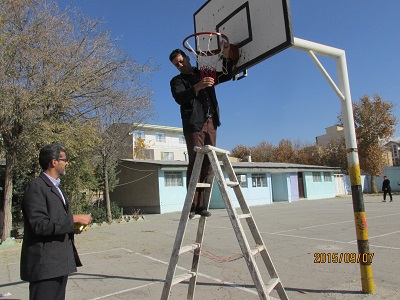 امروز به همت آقای عبدالمحمد گودرزی ( معاون آموزشی دبیرستان ) سبد بسکتبال و تورهای فرسوده ی آن جهت بهره گیری دانش آموزان تعویض شد .
